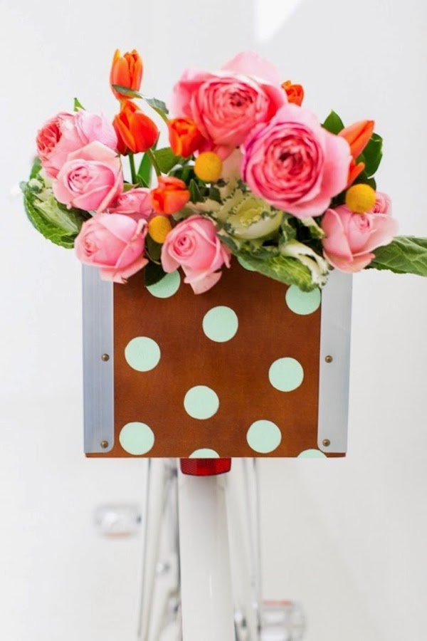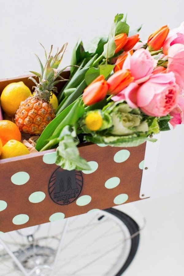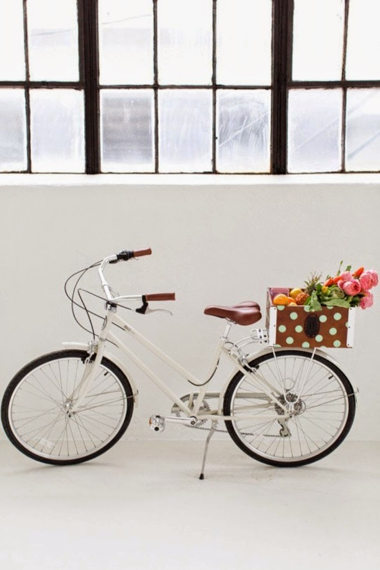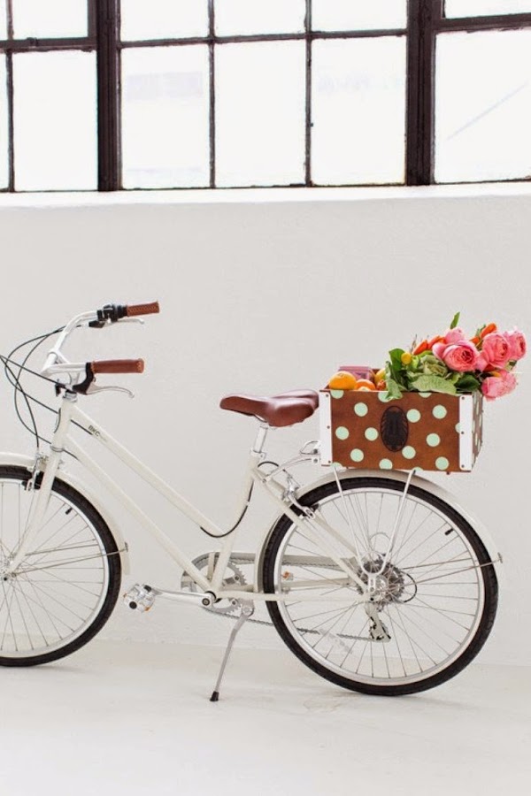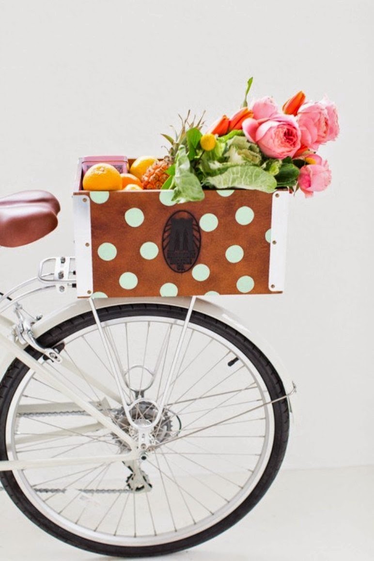 Hace frío, mucho viento y el cielo está gris, quizás por eso, cuando vimos esta imagen nos pareció tan romántico... Ir a pasear en bicicleta y hacer un pícnic improvisado, o ir al mercado a comprar y cargar la cesta de flores y frutas... Mientras esperamos a que el tiempo sea más agradable para realizar actividades al aire libre, podemos hacer este DIY para tener una cesta de lo más alegre y Chic.