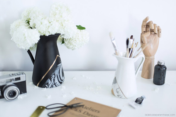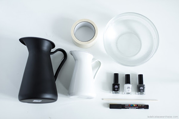 Empezamos la semana con un DIY que encontré en el blog La delicate parenthese y me pareció un 10, totalmente diferente a lo que habíamos visto hasta ahora y una técnica de lo mas original, se trata de pintar y cambiar la imagen de unas jarras de Ikea con PINTAUÑAS.