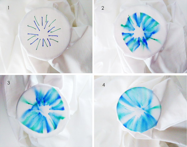 Hace unos días descubrí una manera para pintar textiles con rotuladores y alcohol que me tiene cautivada, es rápida, fácil y limpia, mucho mas sencilla que la técnica dip dye. Mi gran hallazgo lo localicé en el blog Hadas y Cuscus, en el que mostraban un tutorial para pintar camisetas, y pensé que también pudiera usarse para otro tipo de textiles, como cojines o colchas, aunque reconozco que he modificado un poco el paso a paso.Empecé probando en unos trozos de tela de algodón inservibles para ver el resultado y poco a poco fui adaptando la técnica al efecto que quería lograr. Al principio utilicé rotuladores normales pero la tinta no se difuminaba muy bien así que cambié a rotuladores permanentes...........entonces si logré el efecto de tornasol que quería.