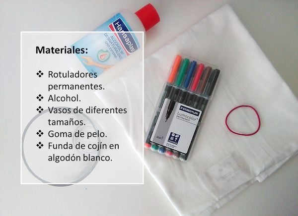 Como ya te he avanzado este tutorial para crear dibujos con rotuladores y alcohol en la funda de un cojín es muy sencillo y limpio, apenas ensucias nada, algo muy importante.
