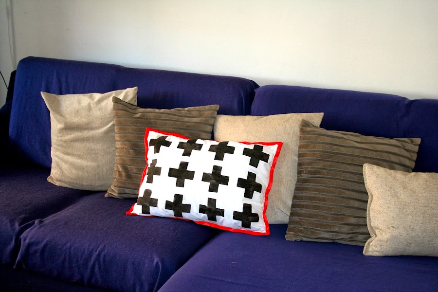 Siento mucho lo de las fotos del proceso, de verdad, pero quería que vieras el cojín y que es muy sencillito de hacer ¿Qué os parece? Es el primero que hago, la calidad deja un poco que desear, pero ya iré mejorando. Yo creo que destaca muchísimo al elegir el borde rojo, pero vosotras como más os guste. También quiero hacerme con un cojín mostaza para aportar un poco de color al sofá. Nos vemos en el próximo post y un beso!