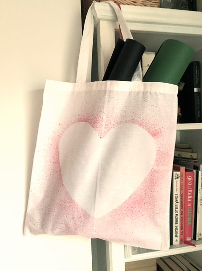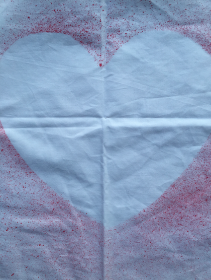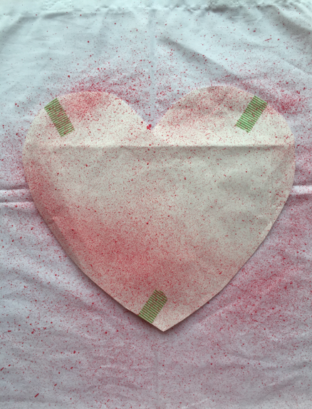Pegamos el corazón por detrás y con el pincel húmedo de pintura vamos salpicando el contorno, se acuerdan que lo hacíamos en la primaria mil veces... en este caso es IGUAL DE FÁCIL