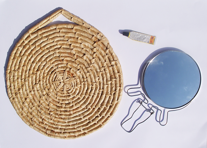 Fuí a comprar un salva-mantel de mimbre que me costó 1,80 ??? y busqué un pegamento fuerte....ya tengo los materiales para mi espejo, así que manos a la obra