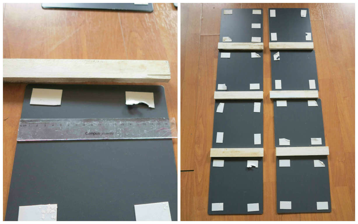 Pintura al gustoEmpezamos con el listón de menor tamaño. Lo primero será poner el suelo nuestros espejos para coger las medidas, y cortar la distancia de ancho de cada espejo.