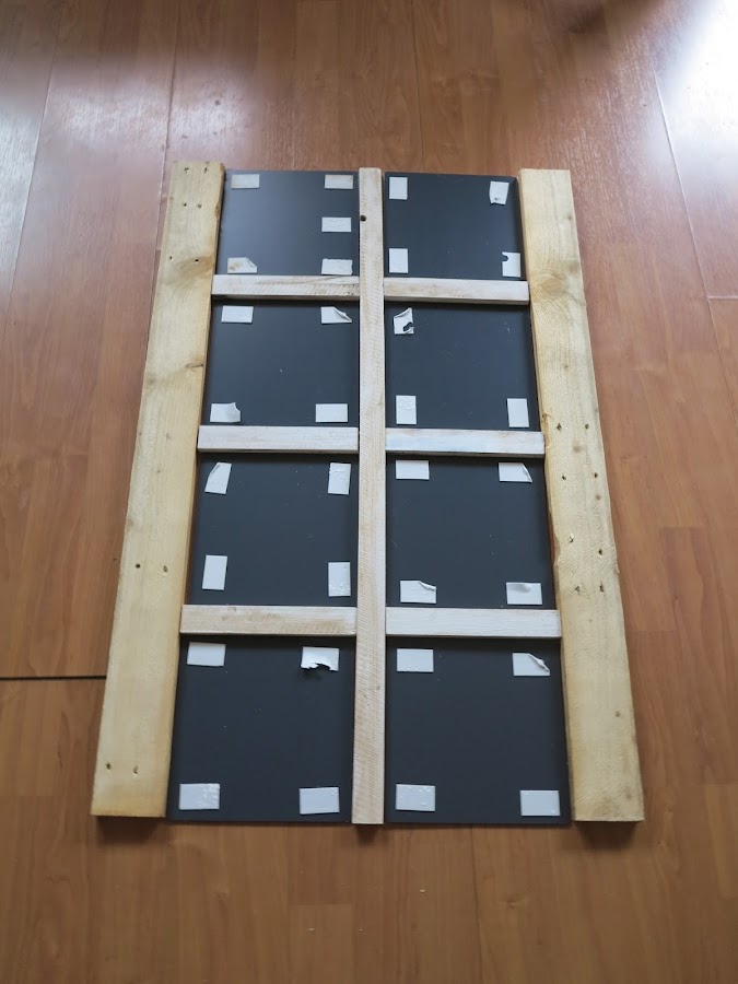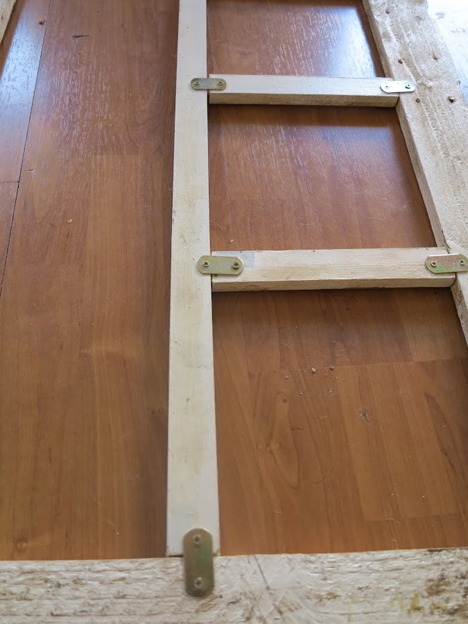 En una de las partes, añadí un tablón más para distinguir la parte inferior de la superior (la foto está al revés, disculpad, pero mientras se está trabajando me es un poco difícil estar haciendo fotos y que queden "bonitas") y darle más altura.
