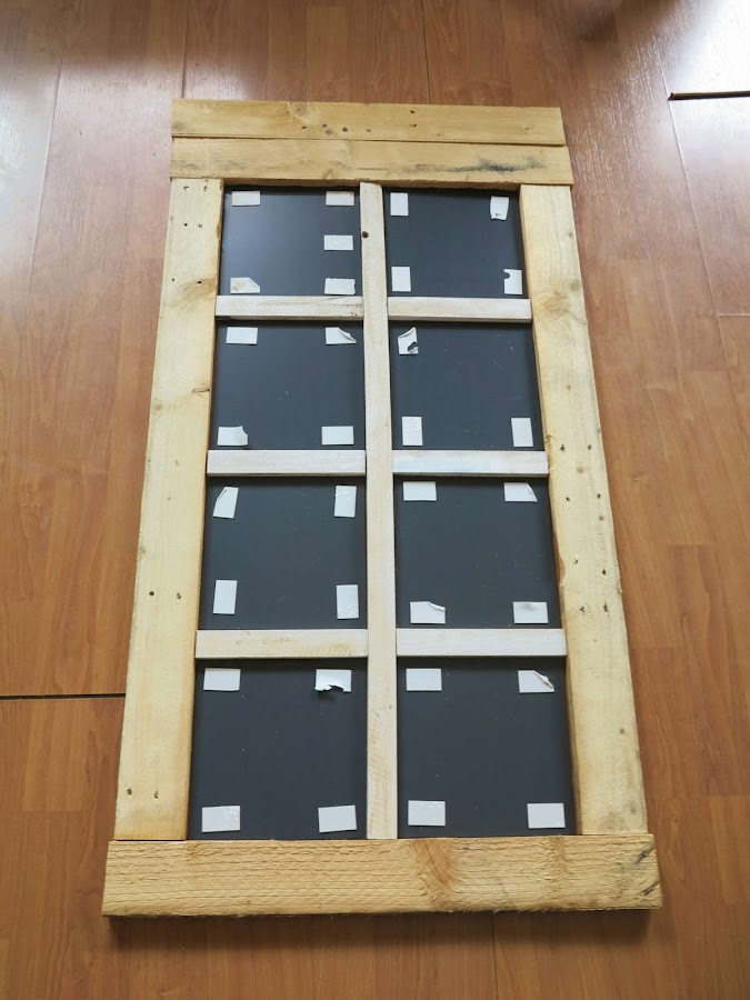 Cuando tengamos montada la estructura, solo hay que pegar detrás el cartón con la silicona y encajar en cada hueco los espejos, con sus propios autoadhesivos o con la silicona.