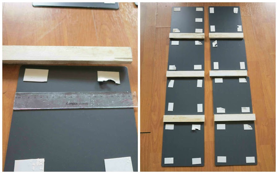 Para la base lo ideal seria una plancha de madera, pero como yo no quería gastarme dinero, utilice cartón porque aguanta bien el peso de los espejos (pero hay que tener cuidado a la hora de limpiarlos y no presionar demasiado)