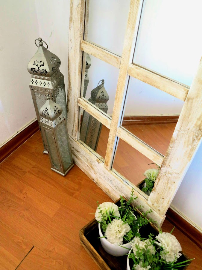 ¡Buenos días! En el post de hoy os traigo uno de mis últimos trabajos, un espejo con forma de ventana, y os preguntareis el porque de esta forma... muy sencillo, porque ya tenia los espejos, jeje. Ya sabéis que a mi me gusta reutilizar las cosas, mirarlas desde otra perspectiva y darles una segunda oportunidad, y esto es lo que me paso con los espejos que tengo en el comedor (si no los recuerdas aquí te los enseño)
