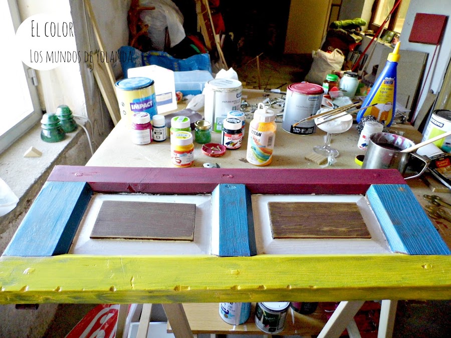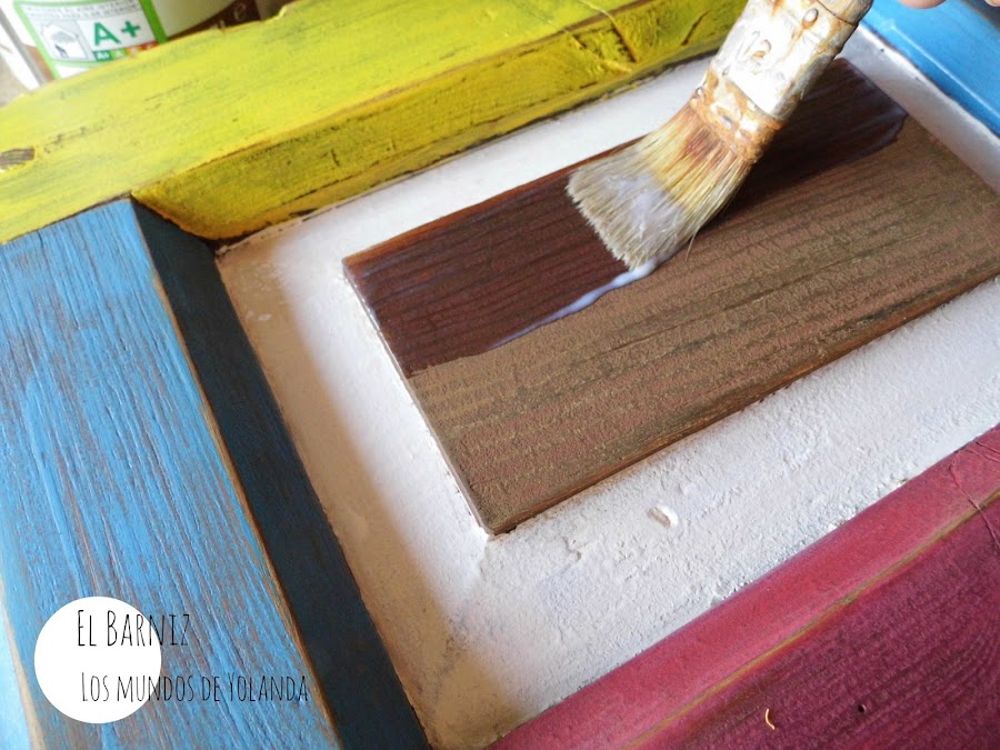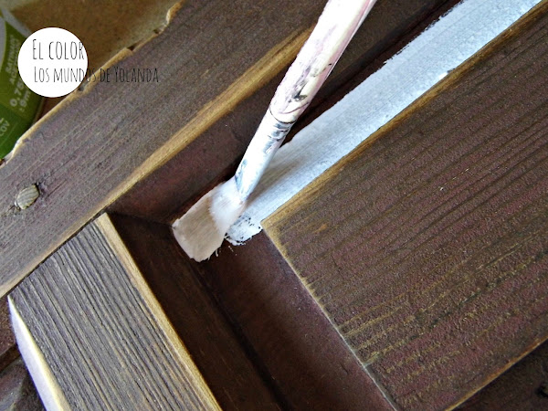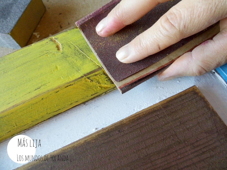 Mientras se secaba la pintura lijé el cuarterón, desgastando las esquinas, dejando verse la madera del cuarterón.