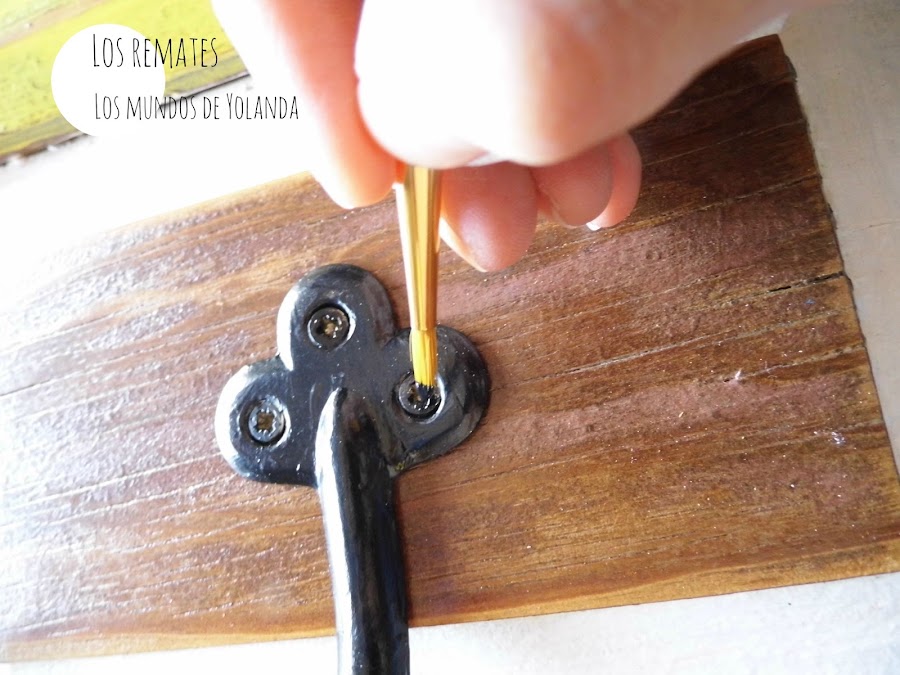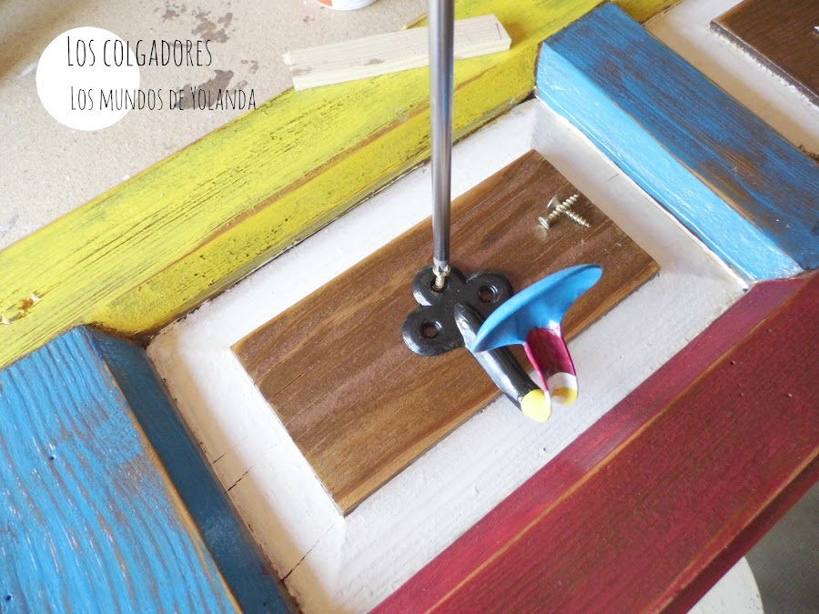 Colocar los colgadores con unos tirafondos y pintarlo, para disimularlos. Yo los barnicé también para protegerlos, pero no lo hice en el interior del mismo para facilitar el quitarlo, ¡si es necesario!