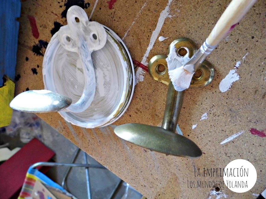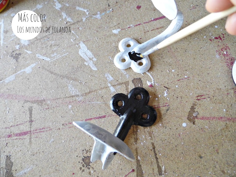 Una vez seca la imprimación comenzamos a pintar de colores los colgadores.