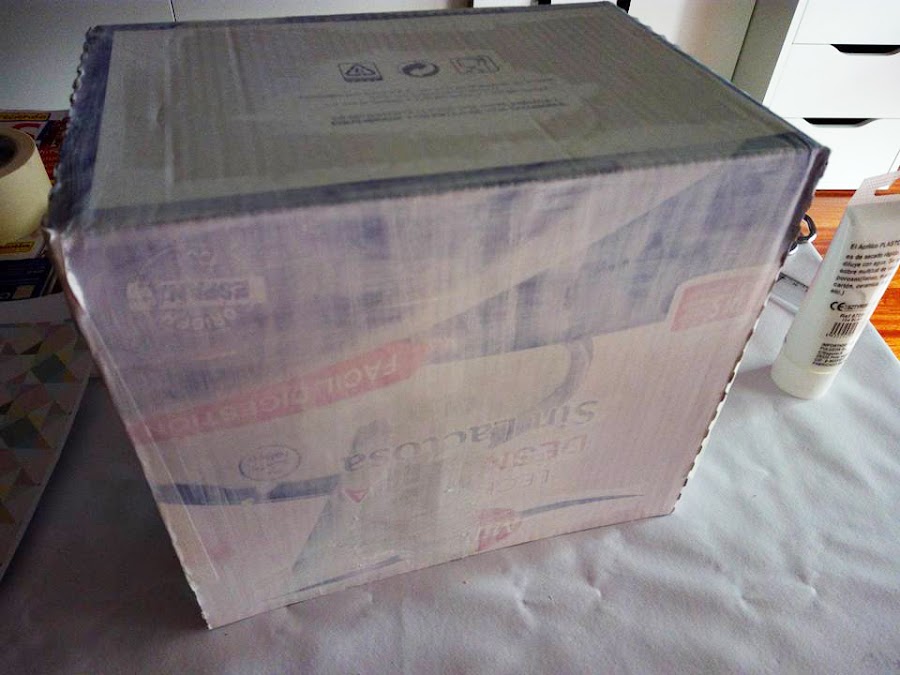 Pero un día, al volver del súper se me iluminó la bombilla. Acababa de terminar de colocar la leche en la despensa y ahí estaba, delante de mis ojos tenía la caja con el tamaño perfecto para solucionar mis problemas (o al menos uno de ellos..:D).