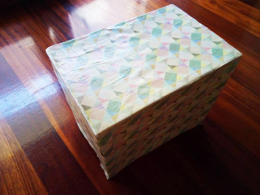Ya veis que es una idea muy sencilla. Pero es tan útil que quería compartirla con vosotros. Esta misma técnica podéis utilizarla para forrar cajas para decorar cualquier rincón. Podéis guardar en ellas mil cosas y aprovechar así para reciclar las cajas que van entrando en casa, que a lo largo del año, son un montón.