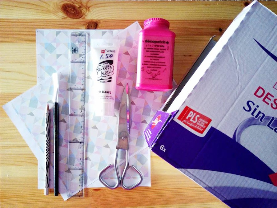 Una caja de cartón. (En mi caso, utilicé una de 6 cartones de leche de Lidl)