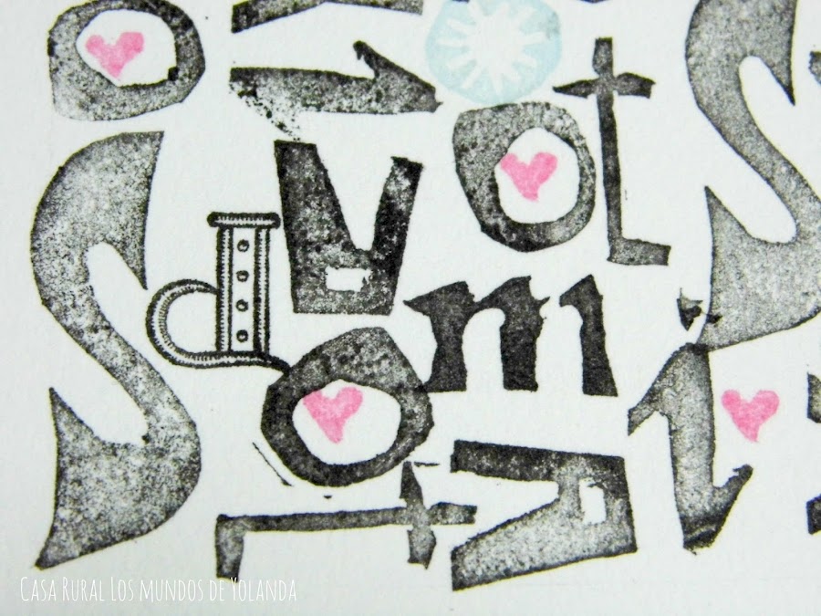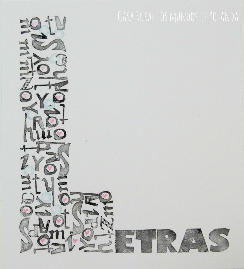 Después con paciencia fui estampando letras por todo el espacio, sin ponerlas todas en la misma dirección.