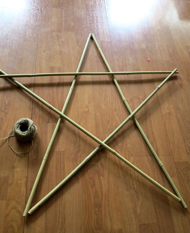 Yo compre mis cañas de bambú en el bazar oriental de mi barrio, tuve que entrar en tres diferentes hasta que encontré las que más me gustaban, como eran bastante largas compre tres para así poder cortarlas y que me salieran cinco cañas más pequeñas, para conseguir la altura que deseaba en la estrella.