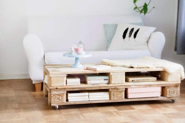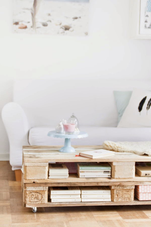 No ha podido gustarme mas la solución de almacenaje poniendo 2 palets y dejando así esos huecos que vienen de maravilla para dejar revistas o los mandos de la tele.