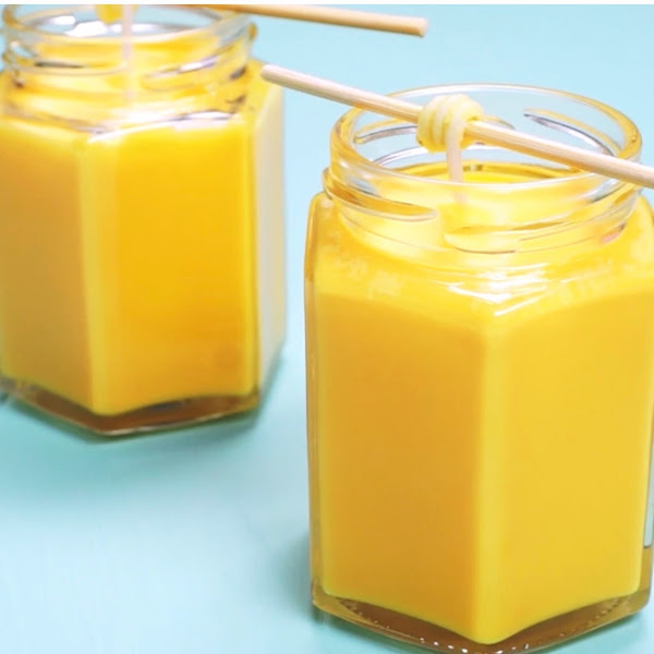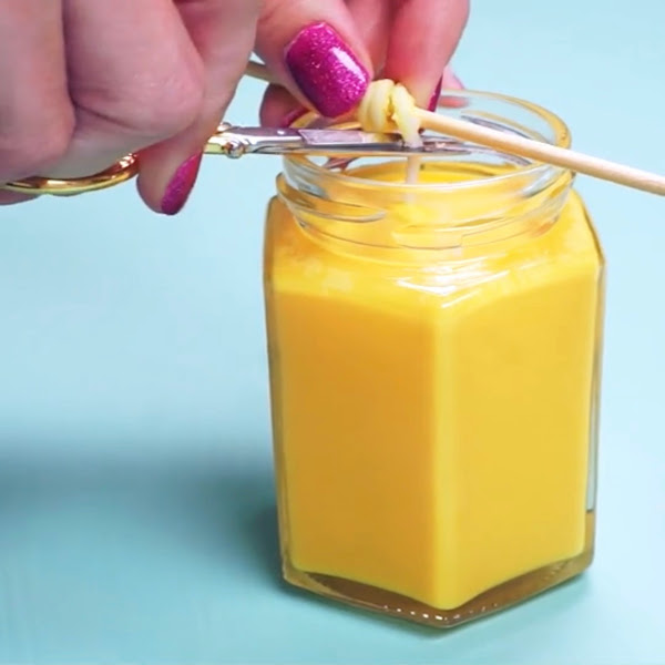 Vierte con cuidado la cera caliente en los frascos de vidrio. Reservar a un lado hasta que se enfríen completamente.