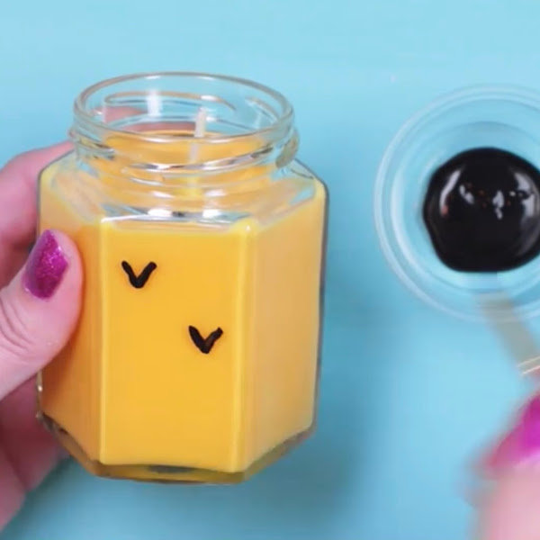 Una vez esté fría la vela, puedes pintar el frasco de vidrio.