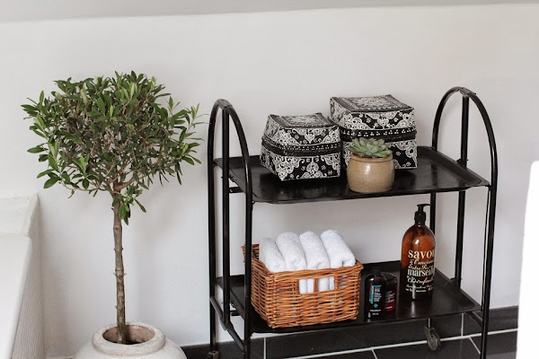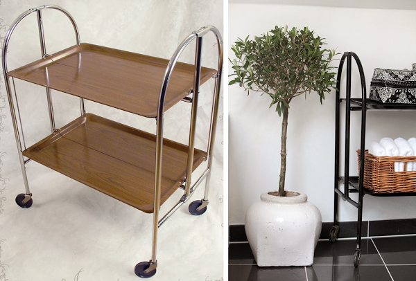Terminamos este repaso por 4 ideas para crear y transformar una camarera, con un viejo carro con estructura de aluminio y bandejas de plástico, que con pintura negra se ha convertido en un práctico y funcional mueble auxiliar para el baño.