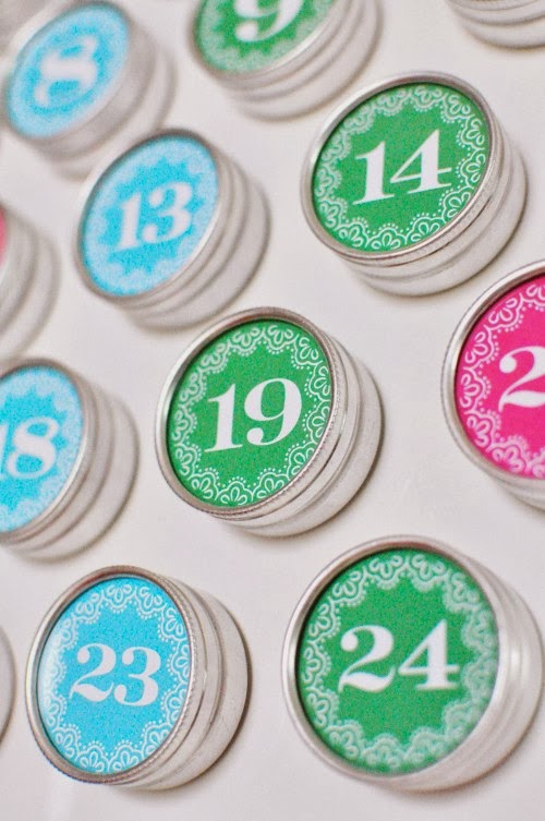 1. Comienza por descargar e imprimir el calendario de adviento PDF . Con un cuchillo de X-Acto, corta a lo largo de líneas negras. Una vez que los círculos se cortan, corte hacia adentro haciendo pequeños cortes a lo largo del borde exterior. Asegúrate de cortar sólo hasta el borde del color. Esto ayudará en la adaptación de las rondas en el interior de los párpados.