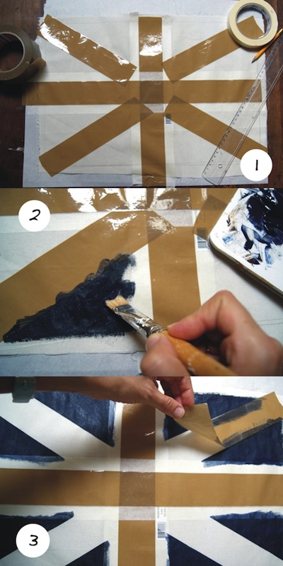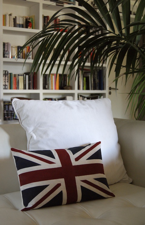 Desde la http://lafactoriaplastica.com podemos encontrar un tutorial exquisito de como hacerte un cojín con la bandera Union Jack. La verdad es que yo lo encuentro un trabajo de chinos pero si tienes tiempo y maña puede quedarte genial. En su caso hizo hasta el cojín, para las que no tenemos máquina de coser o sencillamente no sabemos siempre se puede comprar una funda de cojín blanca (en Ikea las hay tiraditas de precio)