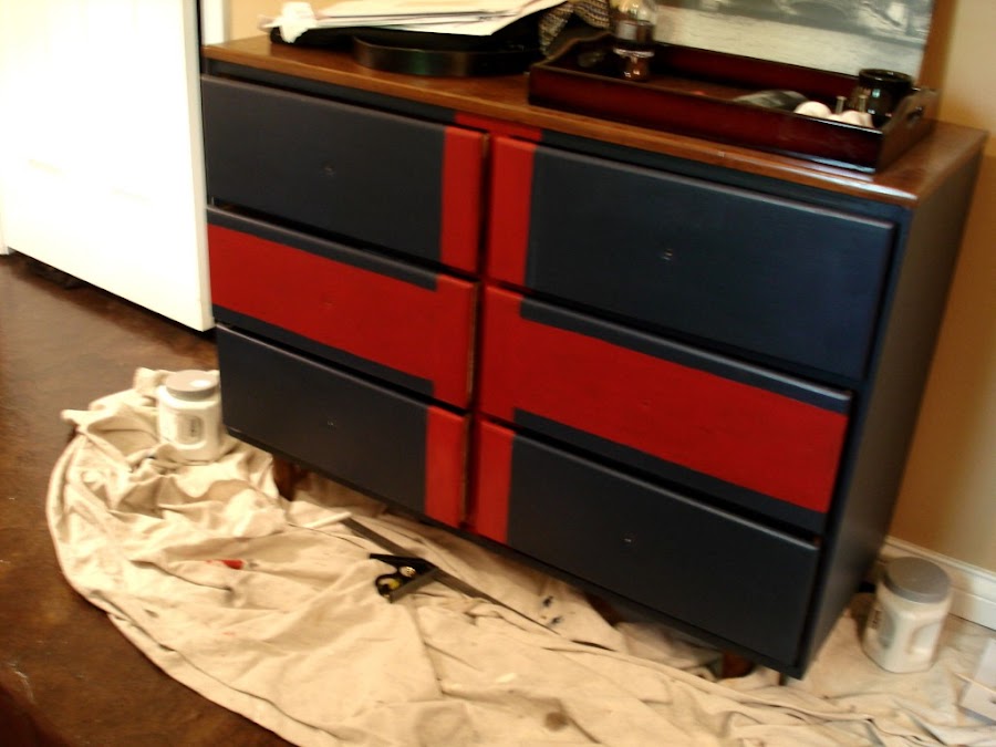 Esta cómoda lleva trabajo,imprimación lijar entre capa y capa y pintura. La chica cuenta que lo hizo a mano alzada pero yo propongo poner la cinta de carrocero el resultado sin duda es mas fino y quedará mejor.