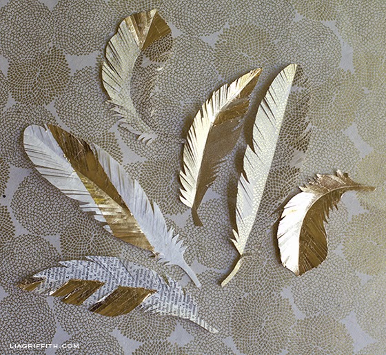 Una serie de manualidades con plumas de papel y oro, bueno color dorado. Tan sencillo como recortar figuras en forma de pluma de un libro o periodico viejo y complementarlo con pan de oro, papel dorado o purpurina. Una vez que tengas las plumas de diferentes formas, las puedes utilizar para cuadros, adornos para un regalo ....seguro que les encuentras una utilidad.