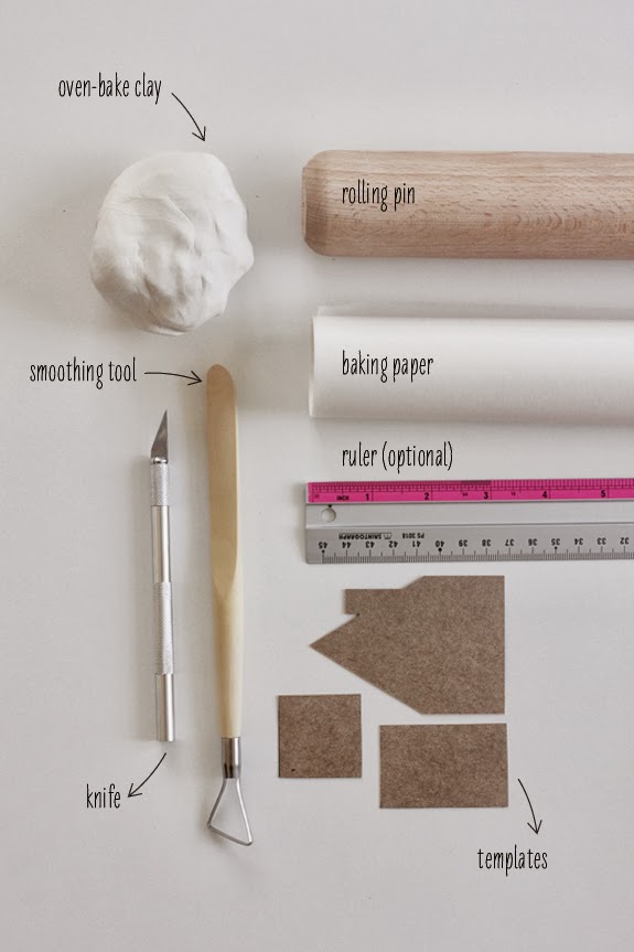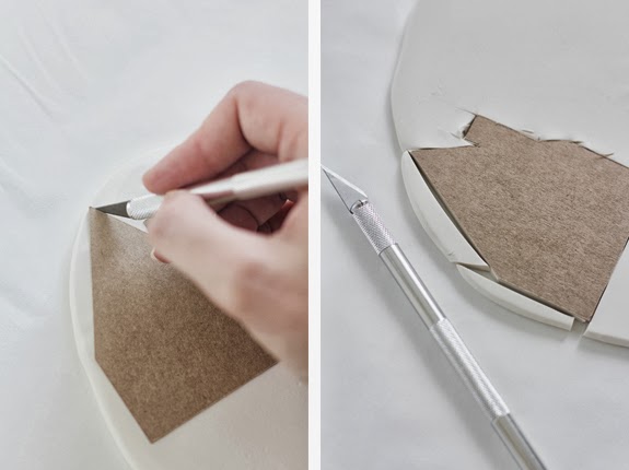 Si vas va a utilizar una plantilla, descárgalo aquí , imprimela sobre un cartón y corta alrededor de él. Coloca las piezas en la arcilla y utilizar el cuchillo para cortar cuidadosamente alrededor de las formas.