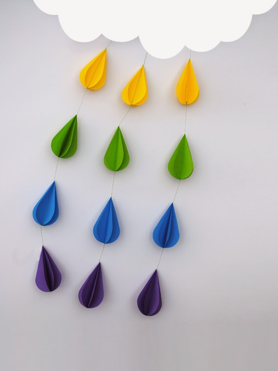 Me gustan los motivos con nubes para decorar los dormitorios infantiles y si encima esas nubes vienen con lluvia me gustan mas. Si a ti también te gustan, no te pierdas este tutorial de un móvil con nubes y gotitas de lluvia realizados con cartulina de colores e hilo.