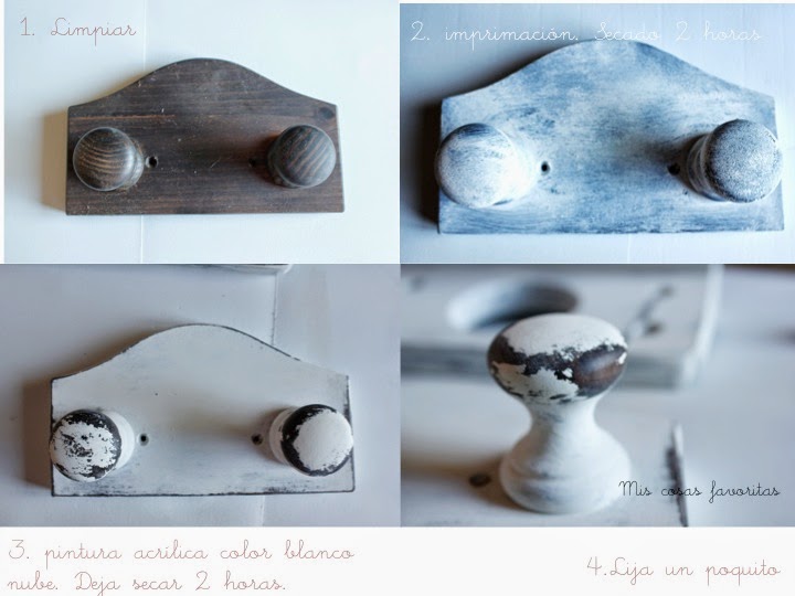 Y ahora vamos con el tutorial que dará nueva vida a unos accesorios de madera de pino que además están teñidos con nogalina, eso los hace especialmente antiguos y desfasados (en mi opinión claro).El hecho que estén teñidos dificulta el lijado y recuperación del color original, así que esta vez pintaremos encima.