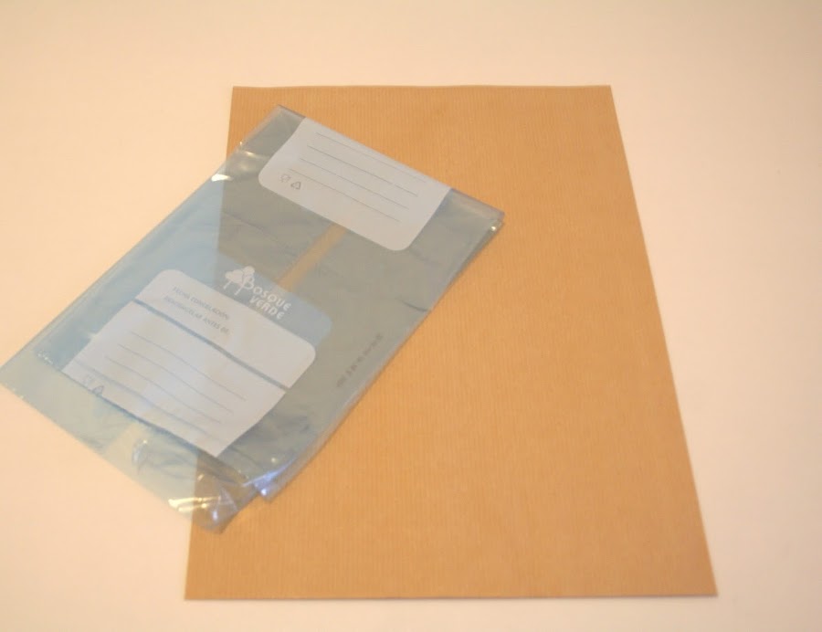 Ahora solo tenemos que arrugar un poco el sobre, introducir dentro la bolsa de plástico y dar vueltas a la parte superior según la altura que le quedamos dar e ir dando un poco de forma con las manos, se nos quedaran dos picos en la base por la forma del sobre o bolsa, no pasa nada, solo hay que introducirlos hacia dentro. La base se nos creara con la base de la maceta que pongamos, o si queremos utilizarlo con otro uso, meter un tapper redondo de plástico en lugar de la bolsa y ya esta.