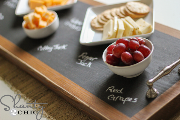 Ya está, ahora ya tienes una fantástica bandeja de pizarra, escribe unas palabras y el nombre de los aperitivos que sirvas y sorprende a tus invitados.?