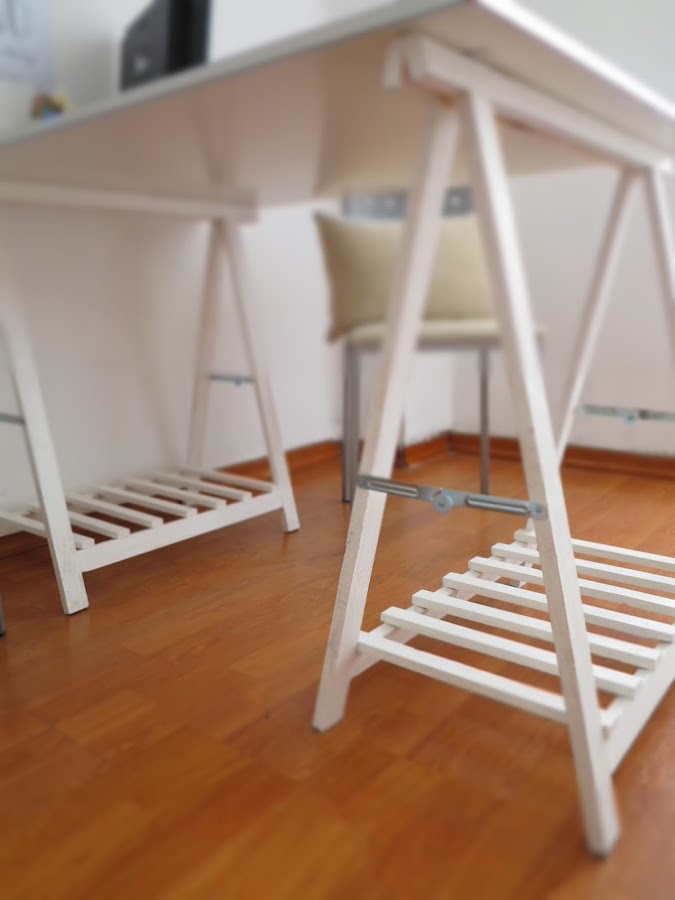 Yo quería los típicos caballetes que se ven en todos los estudios de estilo nórdico, me parecen unas mesa muy originales, sencillas, cómodas, y perfectas, con un estilo 100% despacho. Pero que paso al querer esta mesa, que vi los precios de los caballetes...¡¡25 euros cada uno!!