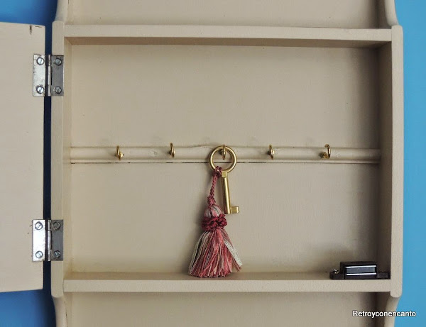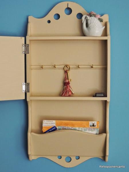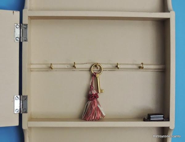 Y este es el resultado obtenido. Un pequeño auxiliar con doble uso: un porta llaves con zona para descansar las cartas.