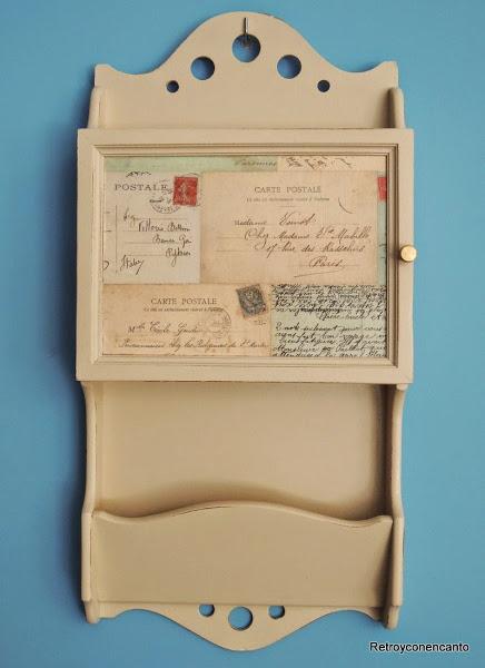 Elegimos un color "Crema de café" de pintura acrílica para aclarar el tono de la madera. Un papel traído del famoso viaje a Nueva York de una de nosotras (y que la otra no acaba de asumir en cuanto a envidia cochina se refiere), nos pareció idóneo para decorar la puerta de nuestro pequeño mueble. Los motivos postales casaban a la perfección con uno de los usos que le daríamos al mismo. ¡Manos a la obra pues!