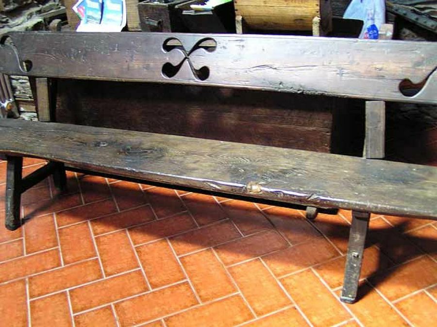 La barra del bar es un original conjunto de piezas de madera. Trabajadas de manera ingeniosa constituyen un pequeño mueble donde se guardan las bebidas. La estancia se completa con piezas únicas hechas a mano por el dueño de la casa, como los bancos que muestra la imagen.