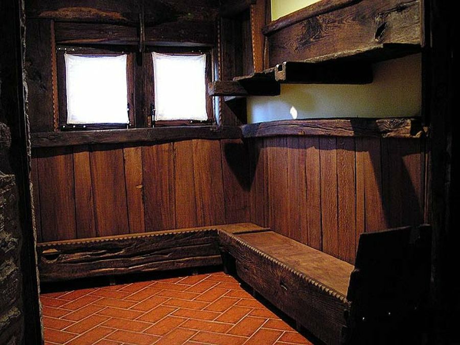 En muchas estancias se han aprovechado el espacio para crear salas de estar. En la parte central los bancos de madera se utilizan como mesitas. Las camas se han construido teniendo en cuenta distintas posibilidades. Algunas se han concebido como literas en las que colocar soportes y otras como camas dobles.