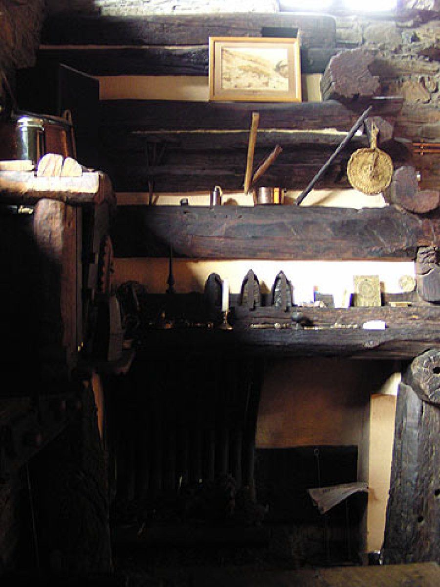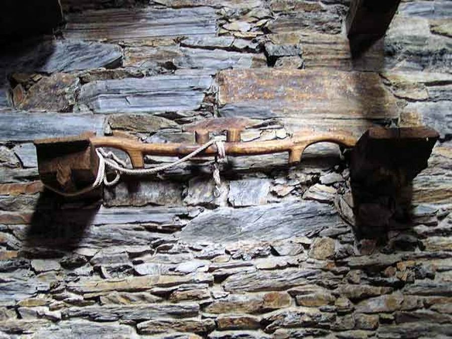 El frío de las montañas lucenses no es un problema para los huéspedes de A Casa do Crego. En una esquina de la estancia se ha restaurado la gran chimenea. Por otro lado, Para conservar lo tradicional en la estancia se usan diversos detalles. Este viejo arado adorna las paredes de piedra en el bar.