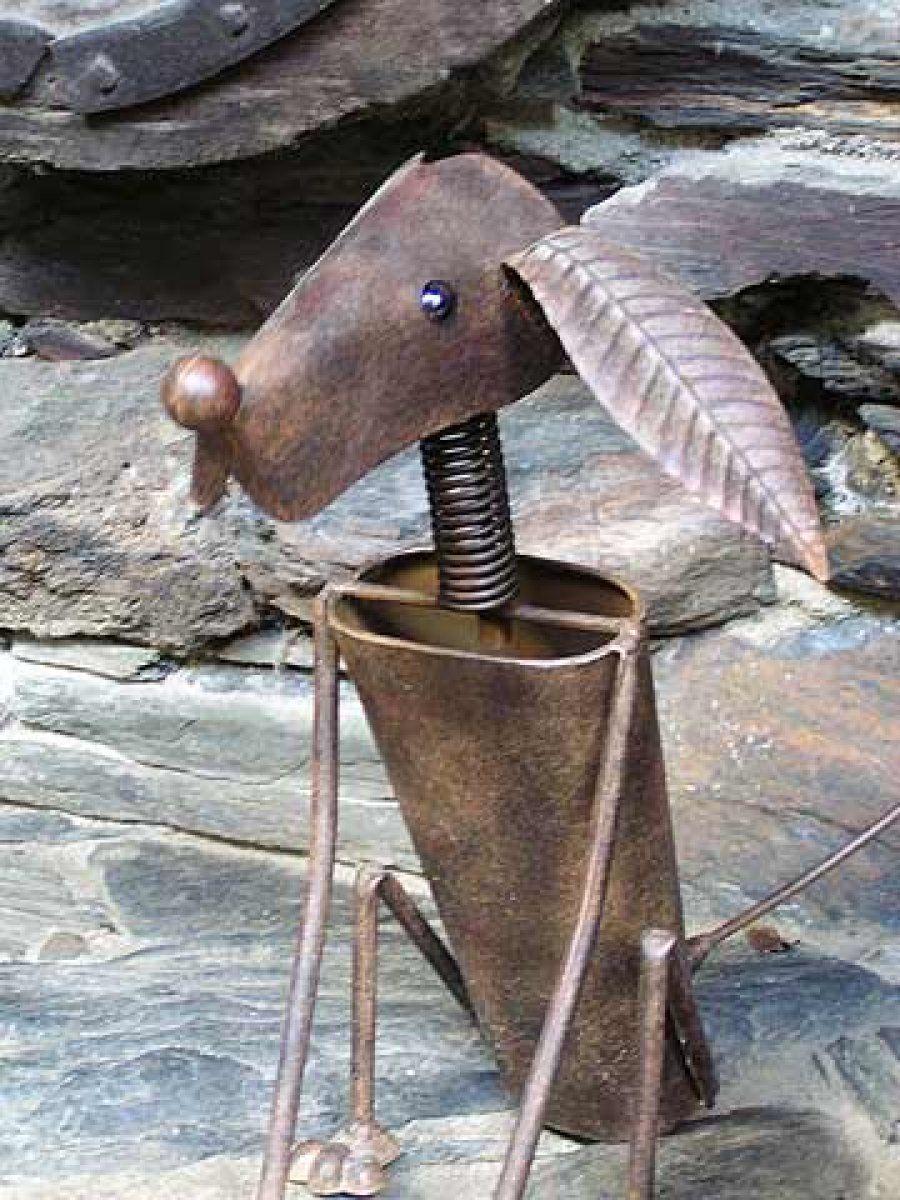 La artesanía de la zona también es un constante en cada rincón. Este pequeño perro realizado en metal y situado en el patio de A Casa do Crego añade un toque de modernidad. La hojalata tiene un tono cobre que no desentona con la calidez que desprende todo el entorno.