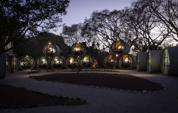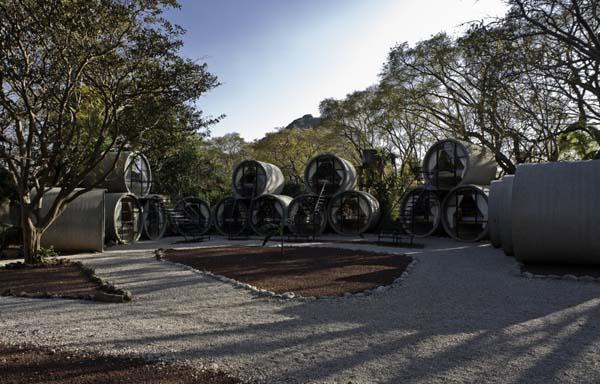 El Tubohotel surgió como la necesidad de hacer un hotel económico para los turistas y en un tiempo récord , solo tres meses! Esta hecho con tubos de hormigón reutilizados y fue diseñado por T3arc en las afueras de Tepoztlán, México , situado en un entorno natural único.