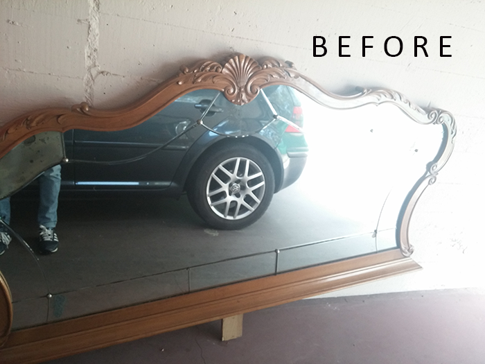 El marco del espejo ahora es su cabecero, el espejo brilla con luz propia sin muchas ostentaciones, sencillo y elegante, bueno y la Cómoda!! Menudo cambio!!