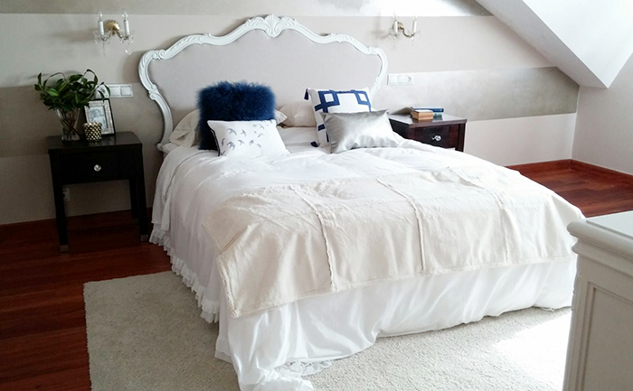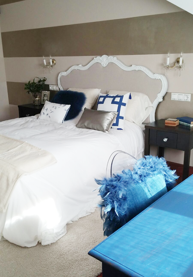 Bueno, María y yo estamos trabajando online desde hace tiempo, cambiando y renovando detalles en su dormitorio. Eso si, todo hay que decirlo, María trabaja más que yo :), porque mira que clienta más apañada tengo!!. Revisando las fotos antes de subirlas aquí yo mismita estaba sonriendo y alucinando de cosas que ha hecho María, ella sola con sus propias manitas. Es digno de ver!!.