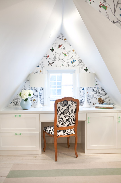 ¡Buenos días! Haber si por fin se cumple las predicciones y deja de llover porque ya nos hemos quedado satisfechos jiji, por eso vamos a invocar a la primavera para que vuelva a brillar en todo su esplendor y que mejor que con este precioso dormitorio abuhardillado tan primaveral gracias a la ayuda de ese papel pintado lleno de mariposas y aves, y seguro que habrás dicho ¿Este papel me suena? Pues sí, lo recordarás porque lo vimos en un precioso estudio que desprendía tan buena energía y que puedes recordar aquí.