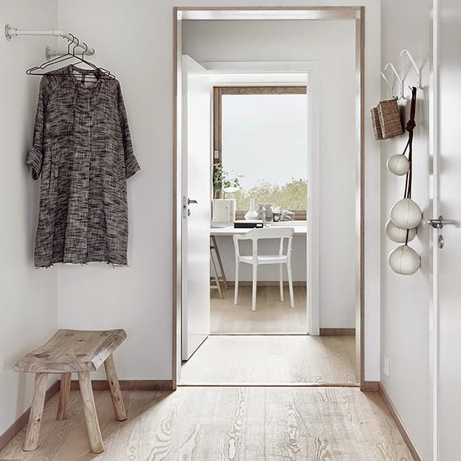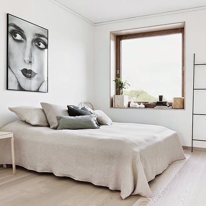 El dormitorio de hoy transmite la calma y tranquilidad que añoro esta semana. Colores neutrales, blanco, madera y mucha luz. Detalles en su justa medida y delicadeza en cada rincón. Perfectamente podría trabajar y dormir en este tipo de espacios. Qué os parece este tipo de ambientes tan sumamente relajados???