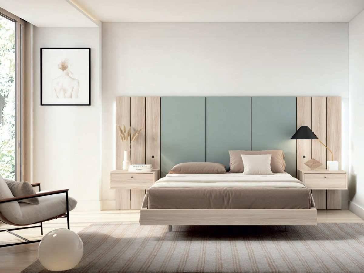 El tamaño del cabecero debe considerarse en relación con la cama y las mesitas de noche, sobresaliendo entre 15 y 20 cm a cada lado.