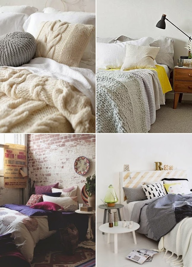 I"ve chosen some bedrooms which have these features in diferent styles, scandinavian, vintage or rustic. The key to get a cozy space is to play with textiles, knit blankets and cushions are so beautiful that it must be too difficult to get out of bed. Another thing I love is decorative lights, I"m thinking of including it in my bedroom... What do you like the most in a bedroom?
