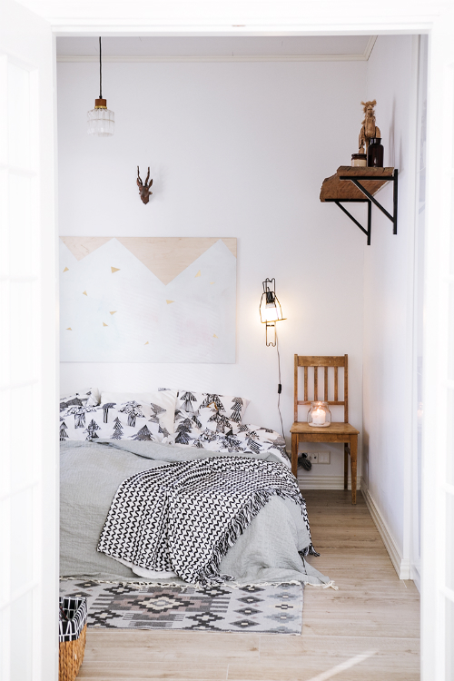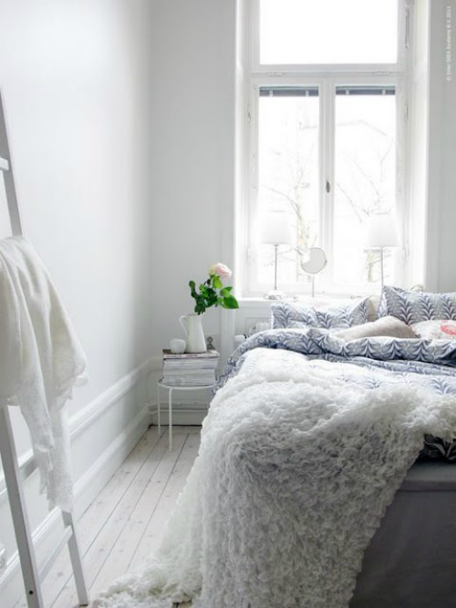 Hola Queridas!!! Hoy traemos fotos de inspiración para dormitorios de aspecto nórdico, de aspecto fresco y limpio. Casi todos en blanco y gris. Para empezar debéis saber, que todo dormitorio de inspiración sueca que se precie debe tener una silla o taburete. Si además la silla o taburete hace de mesilla....mejor que mejor. La sencillez debe ser la clave. Fijaos en la lámpara de este dormitorio. ...