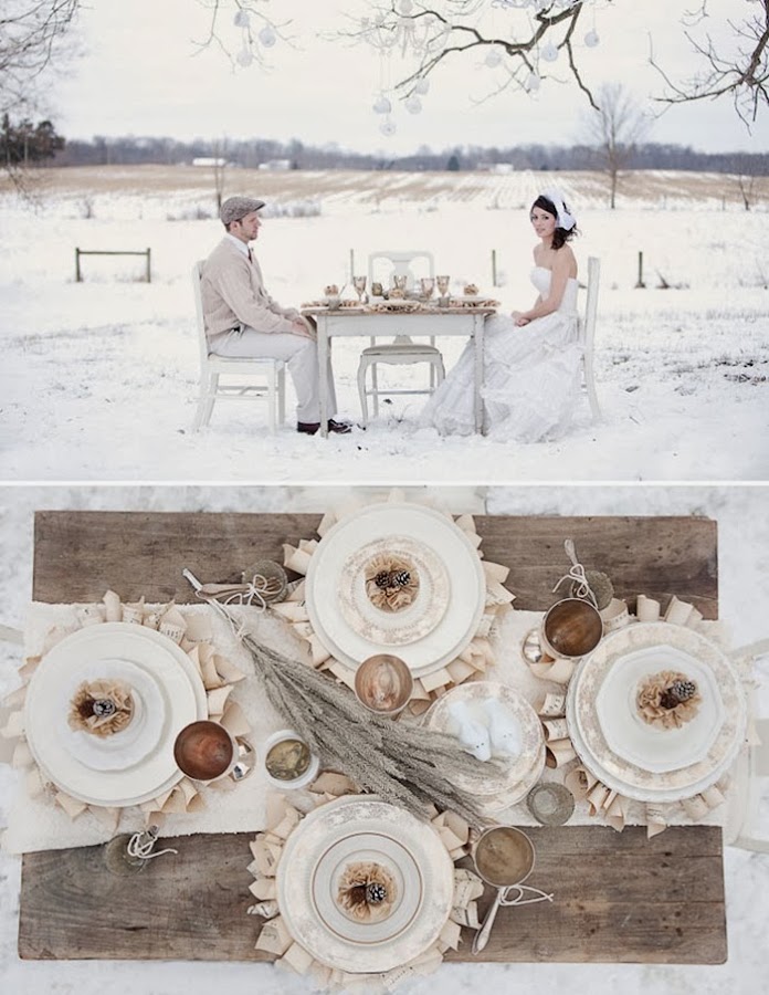 ¡Nos vamos de fiesta! Hoy os propongo dos entornos para dos bodas muy especiales. Con la nieve como fondo, y mucho calor en el corazón!!!! Cuando el amor llama a la puerta todo lo demás........¡¡¡ni la novia tiene frío!!! Pues yo he de confesaros que con solo ver las imágenes me estoy congelando jajaja.