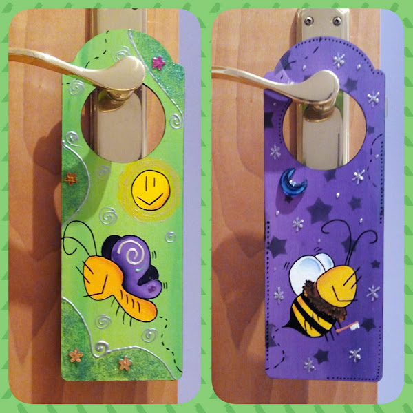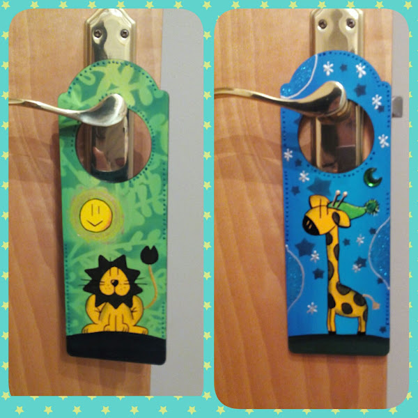 Nos pusimos a pensar qué podíamos dibujar en cada cara de los pomos... y para que ellos los fueran colocando cuando tocaban, decidimos hacer una parte de noche, y una de día.